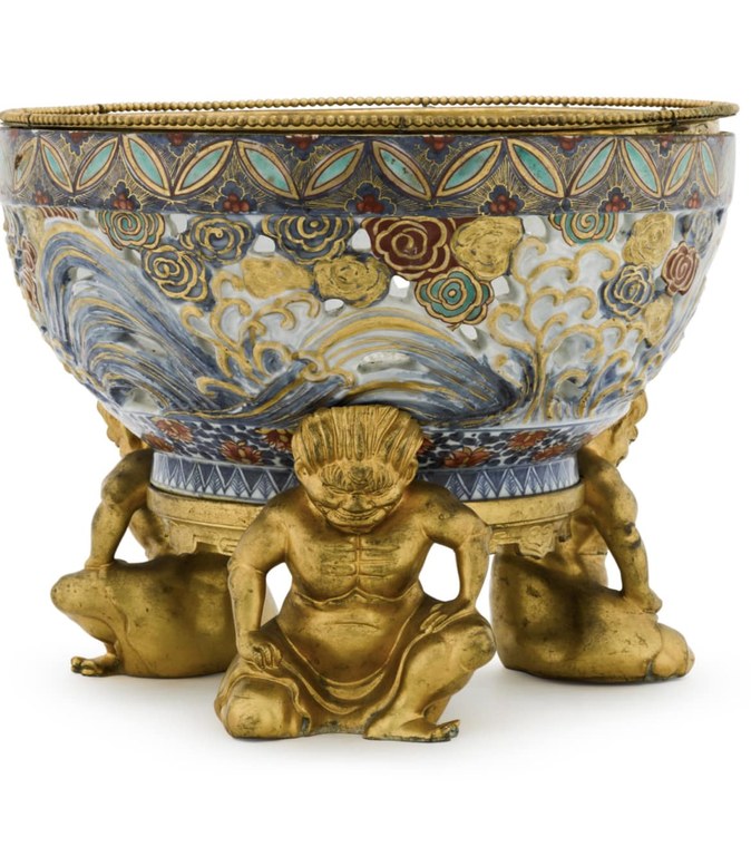 A gilt-bronze mounted porcelain bowl, the porcelain Japanese and possibly 18th century, the mounts late 19th century