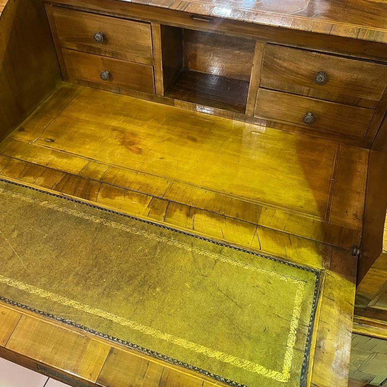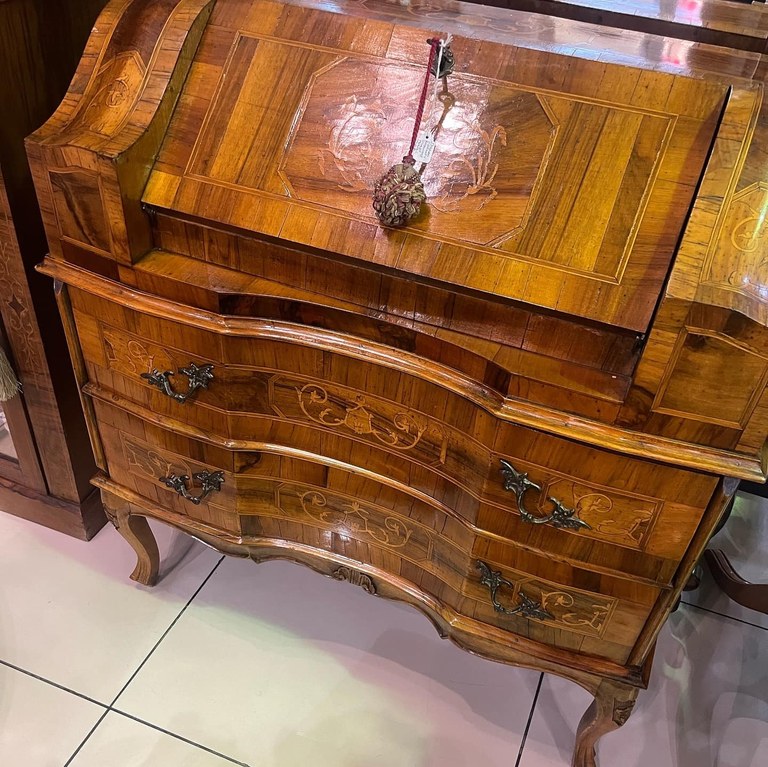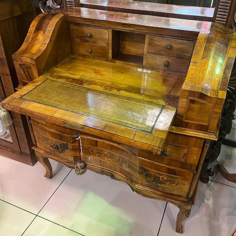 At Ghorbany Benmore we have an elegant Italian Louis XV style walnut & rosewood inlaid bureau.